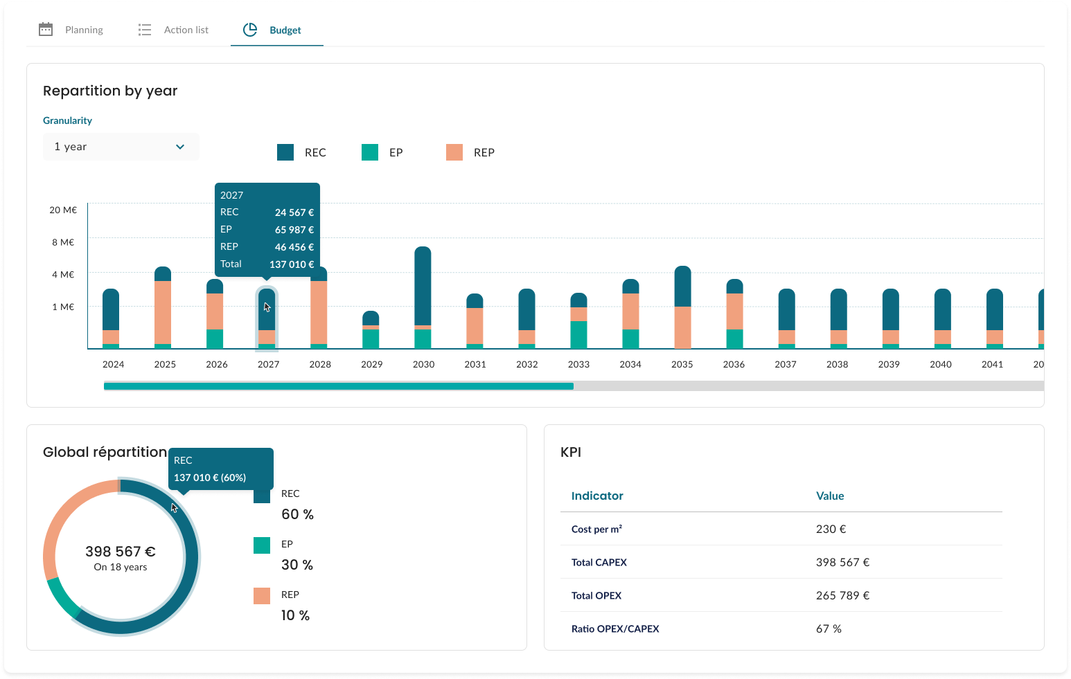 Interactieve kaarten en dashboards Zet complexe activagegevens om in duidelijke inzichten over de staat, risico's, energieprestaties en renovatiewaarde.